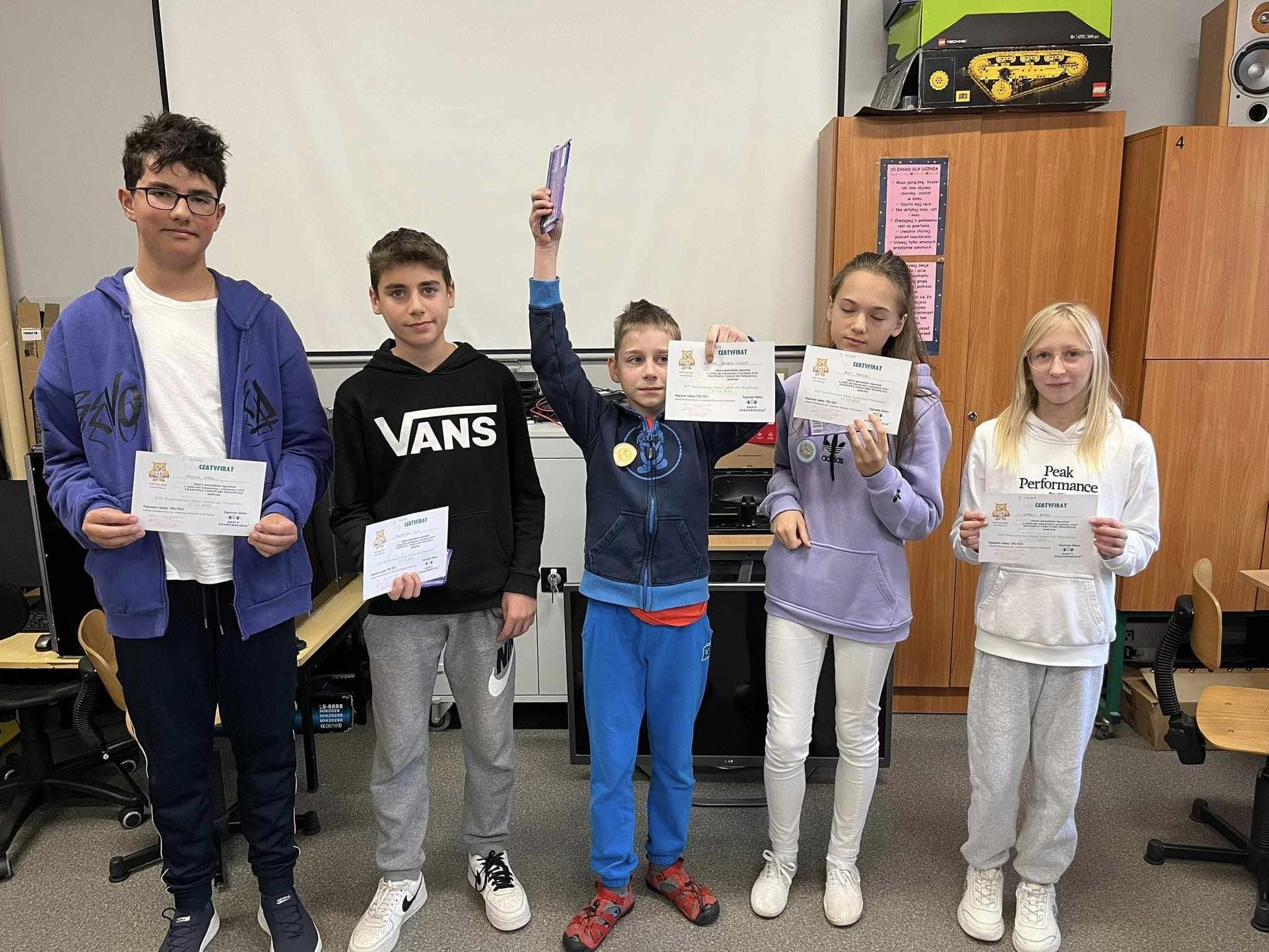 W dniu 17.11.2023 r. w ramach Festiwalu Nauki im. Franciszka Łukaszczyka świętowaliśmy Światowy Dzień Tabliczki Mnożenia. Uczniowie klas I-III rozwiązywali matematyczne łamigłówki z sową. Uczniowie klas IV-VIII wzięli udział w meczu z Tabliczki mnożenia. Z każdej klasy wyłonieni zostali dwaj finaliści, którzy wzięli udział w finale.